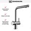 Благодаря особой конструкции вы можете также направить воду из раковины в ванну или из одной чаши мойки в другую одним поворотом крана в нужную сторону. Дополнительная деталь, которая повышает комфорт использования, — аэратор. Он делает поток воды мягче, насыщая его кислородом, таким образом дополнительно уменьшая ее расход: объем струи увеличивается за счет воздуха, а не за счет повышения напора из водопровода. К этой модели можно подключить фильтр для питьевой воды.