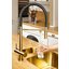 Высота излива — один из важнейших параметров, которые необходимо учитывать при выборе кухонного смесителя. Высотой называется расстояние от поверхности, на которой установлен смеситель, до его носика, то есть это, по сути, длина струи воды. Подбирать модель по высоте следует так, чтобы в раковину без труда помещались любые емкости, которыми вы пользуетесь, включая большие кастрюли и высокие вазы, а вода при ударе о дно раковины не разбрызгивалась во все стороны. Чем больше высота излива, тем глубже должна быть раковина.