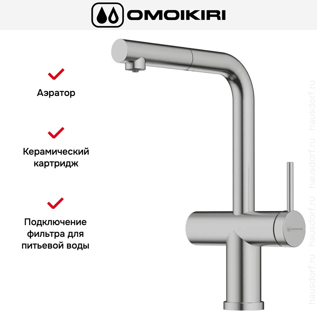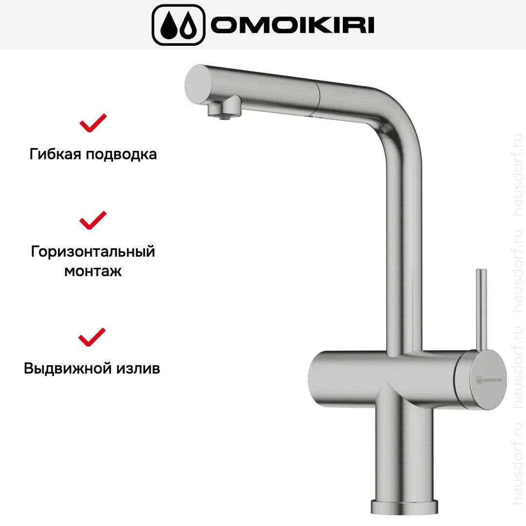 Смеситель Omoikiri KARATSU-S BN нержавеющая сталь в Санкт-Петербурге