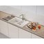 Внутри крана помещается шланг, который можно растянуть, чтобы достать струей воды до второй чаши мойки или тщательно сполоснуть посуду.