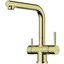 Смеситель с подключением к фильтру для воды — современная модель, которая облегчает быт. Вместо двух соединений с водопроводом у таких вариантов их три, а трубка, по которой идет отфильтрованная вода, находится внутри крана. Чуть дальше основного отверстия, через которое подается поток в раковину, расположено отверстие поменьше — для питьевой воды.