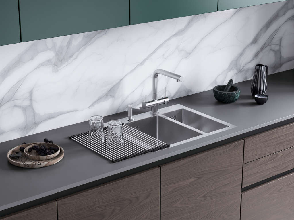 Благодаря особой конструкции вы можете также направить воду из раковины в ванну или из одной чаши мойки в другую одним поворотом крана в нужную сторону. Дополнительная деталь, которая повышает комфорт использования, — аэратор. Он делает поток воды мягче, насыщая его кислородом, таким образом дополнительно уменьшая ее расход: объем струи увеличивается за счет воздуха, а не за счет повышения напора из водопровода. К этой модели можно подключить фильтр для питьевой воды.