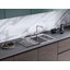 Внутри крана помещается шланг, который можно растянуть, чтобы достать струей воды до второй чаши мойки или тщательно сполоснуть посуду.
