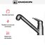 Внутри крана помещается шланг, который можно растянуть, чтобы достать струей воды до второй чаши мойки или тщательно сполоснуть посуду.