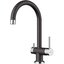 Для подачи чистой воды смесители могут оснащаться единственным рычагом, при помощи которого производится переключение на фильтр. Этот же рычаг регулирует напор и температуру водопроводной воды. Чаще на изливе имеются два рычага, один из которых отвечает только за включение фильтрованной воды.