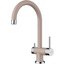 Смеситель с подключением к фильтру для воды — современная модель, которая облегчает быт. Вместо двух соединений с водопроводом у таких вариантов их три, а трубка, по которой идет отфильтрованная вода, находится внутри крана. Чуть дальше основного отверстия, через которое подается поток в раковину, расположено отверстие поменьше — для питьевой воды.