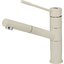 Выдвижной излив в кухонном смесителе — это гибкая трубка из резины в металлической оплетке, расположенная внутри основного излива. Для того, чтобы воспользоваться гибким изливом — например, наполнить высокую посуду, — достаточно включить воду и потянуть за головку, находящуюся на конце трубки.