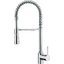 Для использования режима душа смесители оснащаются, как правило, выдвижным изливом, который имеет насадку-душ. В конструкцию у них добавляется элемент, который способен переключать направление струи с обычного излива на гибкий. Отдельный гибкий шланг вытягивается наружу за эту насадку из корпуса излива. Длина его может составить до 1,5 м, что поможет также вымыть все уголки раковины и наполнить емкости любого размера. Кроме смесителей с одним выдвижным изливом , производители предлагают полупрофессиональные модели с двумя изливами.