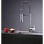 Выдвижной излив в кухонном смесителе — это гибкая трубка из резины в металлической оплетке, расположенная внутри основного излива. Для того, чтобы воспользоваться гибким изливом — например, наполнить высокую посуду, — достаточно включить воду и потянуть за головку, находящуюся на конце трубки.