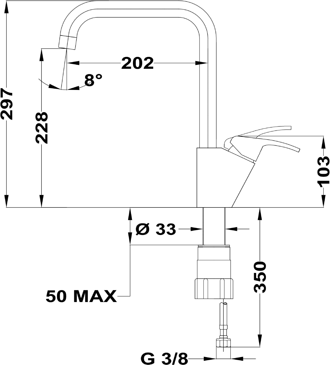 Высота излива — один из важнейших параметров, которые необходимо учитывать при выборе кухонного смесителя. Высотой называется расстояние от поверхности, на которой установлен смеситель, до его носика, то есть это, по сути, длина струи воды. Подбирать модель по высоте следует так, чтобы в раковину без труда помещались любые емкости, которыми вы пользуетесь, включая большие кастрюли и высокие вазы, а вода при ударе о дно раковины не разбрызгивалась во все стороны. Чем больше высота излива, тем глубже должна быть раковина.