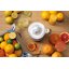 Соковыжималка для цитрусовых позволяет получить сок из лимонов, лаймов, апельсинов. Их достаточно разрезать пополам, поместить разрезом вниз на ребристый конус-наконечник и удерживать вручную или с помощью пресса. При включении прибора конус вращается, сок отжимается и стекает в контейнер.