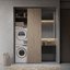 Машины с вертикальной загрузкой из-за своих конструктивных особенностей не могут встраиваться в мебель. Их высота составляет в среднем 89-90 см, и над ними необходимо оставить пространство для свободного открывания дверцы.