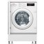 Полностью встраиваемые стиральные машины — один самых распространенных типов, особенно в условиях ограниченного пространства. Они размещаются в тумбах, скрываясь за мебельными фасадами и позволяя таким образом сохранить единство стиля. Вместимость этих устройств варьируется в пределах от 5 до 12 кг белья. Высота их составляет 84-85 см, что является стандартным значением, ширина равна 60 см, глубина же может быть различной. Размещают подобные модели обычно в кухне, а не в ванной, поскольку та имеет меньшую площадь.