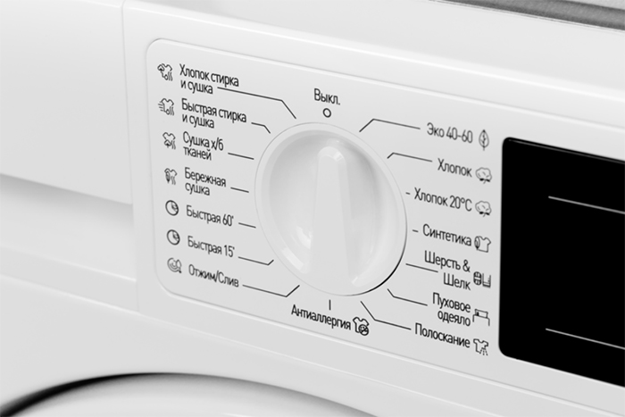 - обычно есть выбор результата – насколько сухим должно быть белье.