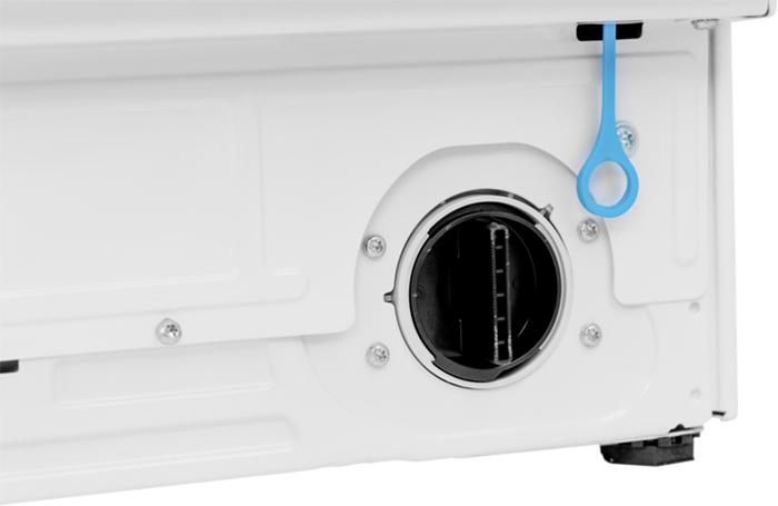 Модели с вертикальной загрузкой отличает надежное крепление барабана на двух валах. Еще одно их отличие — особая конструкция люка: на нем имеется отверстие, закрывающееся на замок. Чтобы получить доступ к барабану, необходимо открыт его и отодвинуть створку.