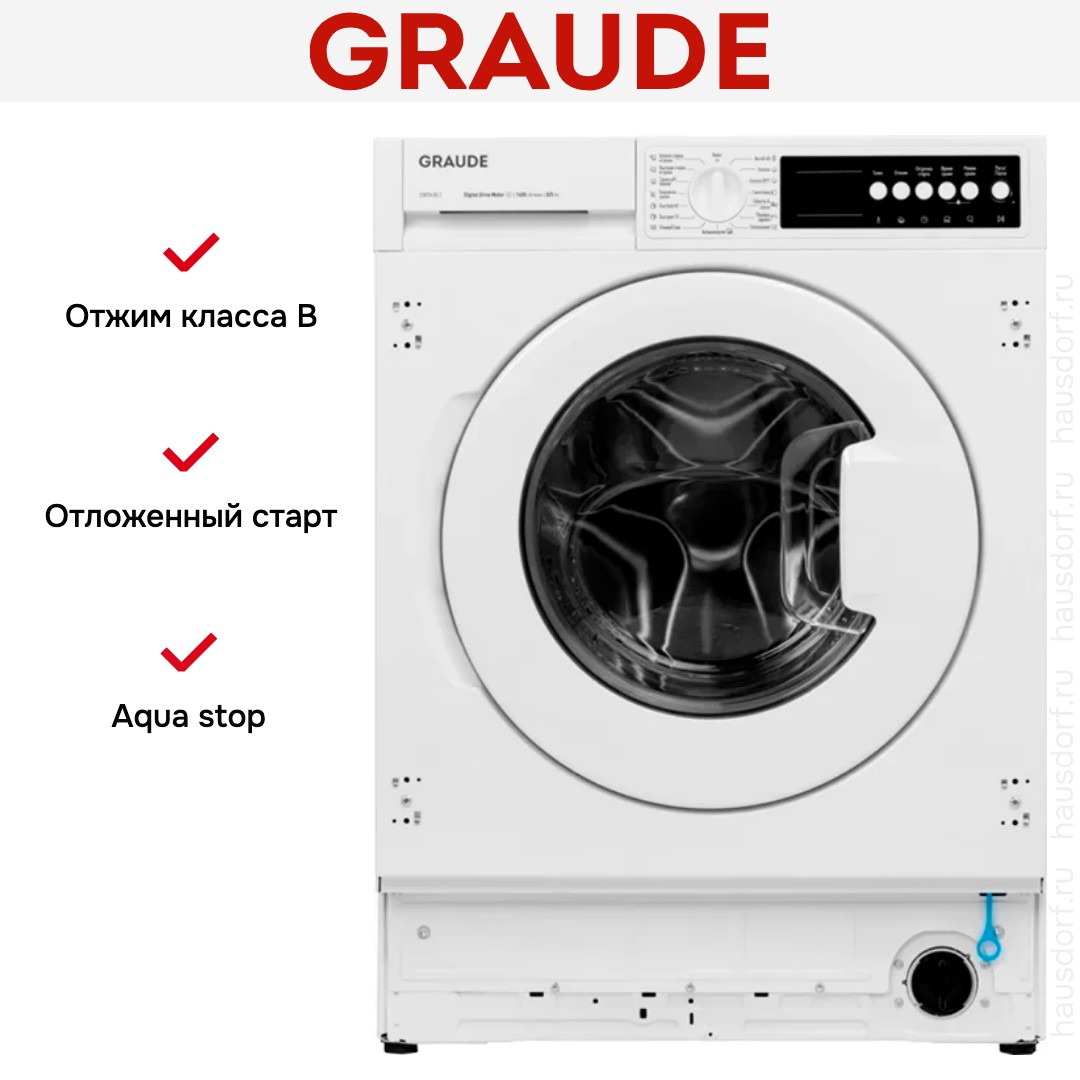 Встраиваемая стирально-сушильная машина Graude EWTA 80-1 — многофункциональный прибор, выполненный в белом цвете. Его компактная глубина 54,4 см и стандартные ширина и высота 59,7 × 81,7 см позволяют установить устройство на кухне или в ванной комнате. Модель относится к встраиваемому типу и предназначена для размещения под столешницей. Длина сетевого кабеля и заливного шланга позволяет удобно разместить машину при стандартной проводке и коммуникациях.