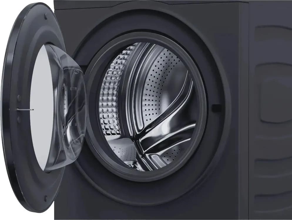 Цвет этой стиральной машинки — черный. Мотор: Инверторный. Благодаря ему машина работает тише, потребляет меньше электроэнергии, сохраняя при этом необходимую мощность.