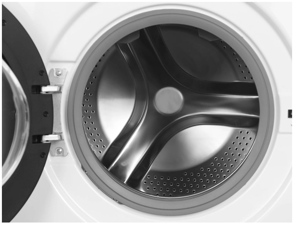 Барабан большого размера имеет целый ряд других преимуществ. Большие машины обычно оснащаются более мощным двигателем, способным развивать высокую скорость вращения. Следовательно, будет увеличиваться и центробежная сила, белье будет интенсивнее соприкасаться со стенками барабана, что ведет к улучшению качества стирки.