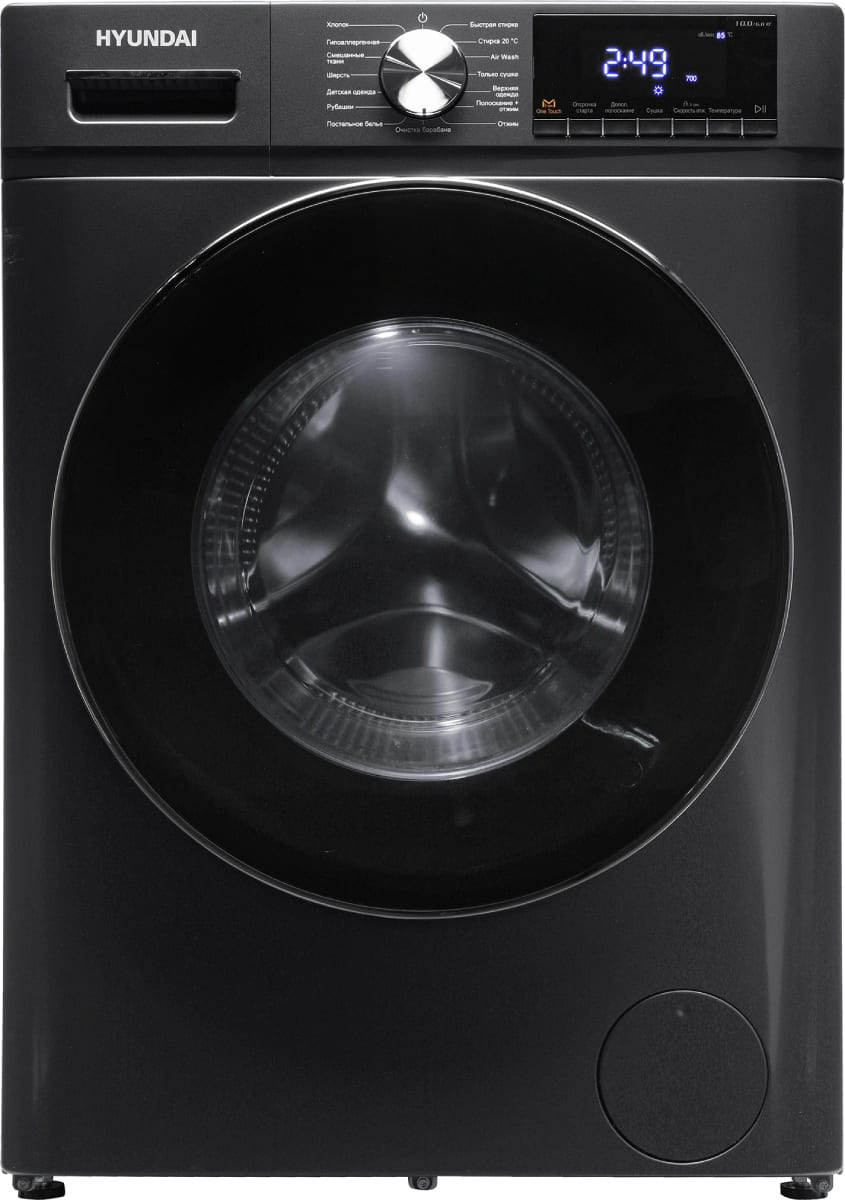 Стиральная машина Хендай WFD9403 темно-серый выпущена в стандартной конфигурации — устанавливается отдельно, поэтому рекомендуем заранее выделить для нее место в квартире. Благодаря классической фронтальной загрузке она привычна и удобна даже для тех, кто не очень разбирается в технике. В барабан помещается большое количество белья, что подойдет большим семьям или тем, кто часто стирает объемные вещи — постельное белье, верхнюю одежду. Максимальная загрузка: 10 кг.
