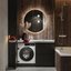 Дизайн выполнен в белом цвете с черными элементами, что придает ей современный и стильный вид. Дверца имеет большой диаметр (47 см), что облегчает загрузку и выгрузку белья. Все детали, включая дверцу и фурнитуру, выполнены из качественных материалов, обеспечивающих долговечность и надежность.