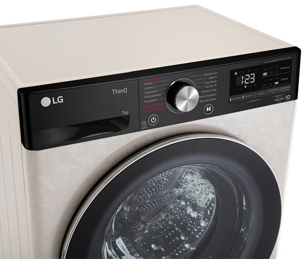 Цвет этой стиральной машинки — бежевый. Мотор: Инверторный. Благодаря ему машина работает тише, потребляет меньше электроэнергии, сохраняя при этом необходимую мощность.