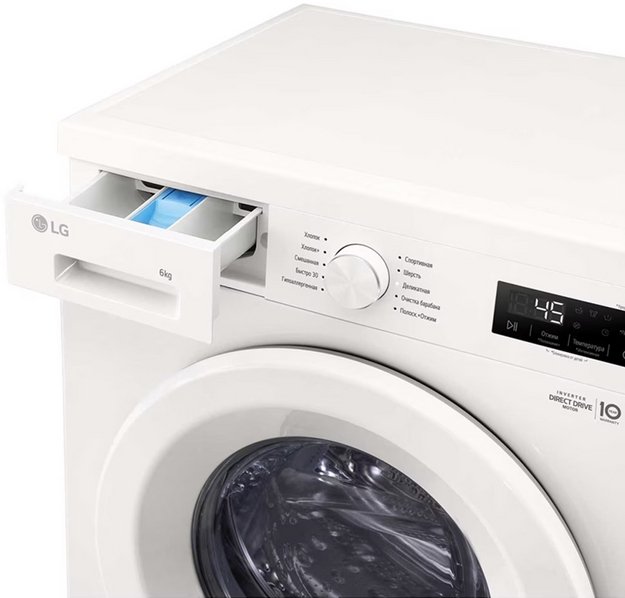 Стиральная машина Лджи F2Y1NS3W выпущена в стандартной конфигурации — устанавливается отдельно, поэтому рекомендуем заранее выделить для нее место в квартире. Благодаря классической фронтальной загрузке она привычна и удобна даже для тех, кто не очень разбирается в технике. За счет небольшой глубины данную модель предпочитают владельцы небольших квартир, студий. В барабан помещается не так много вещей за один раз, но тем, кто не любит копить вещи или просто мало стирает, будет достаточно. Максимальная загрузка: 6 кг.