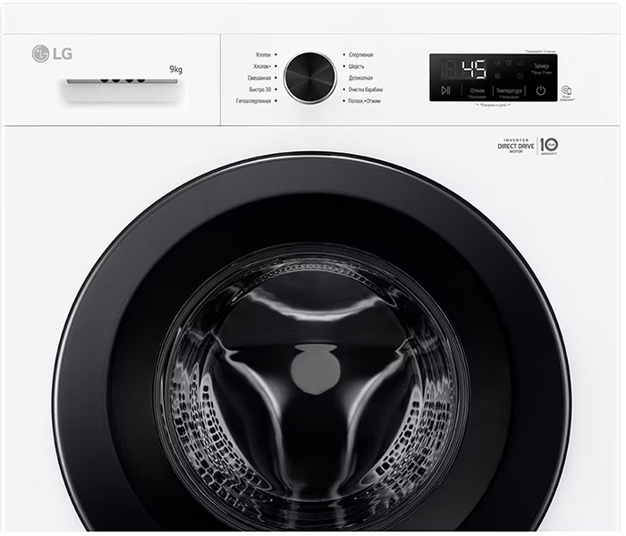 Цвет этой стиральной машинки — белый. Мотор: Инверторный. Благодаря ему машина работает тише, потребляет меньше электроэнергии, сохраняя при этом необходимую мощность.