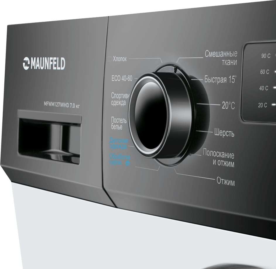 Стиральная машина Маунфилд MFWM127IWHD выпущена в стандартной конфигурации — устанавливается отдельно, поэтому рекомендуем заранее выделить для нее место в квартире. Благодаря классической фронтальной загрузке она привычна и удобна даже для тех, кто не очень разбирается в технике. За счет небольшой глубины данную модель предпочитают владельцы небольших квартир, студий. Вместительность барабана средняя, поэтому ее хватит и для одиночек, и для семей с детьми. Максимальная загрузка: 7 кг.