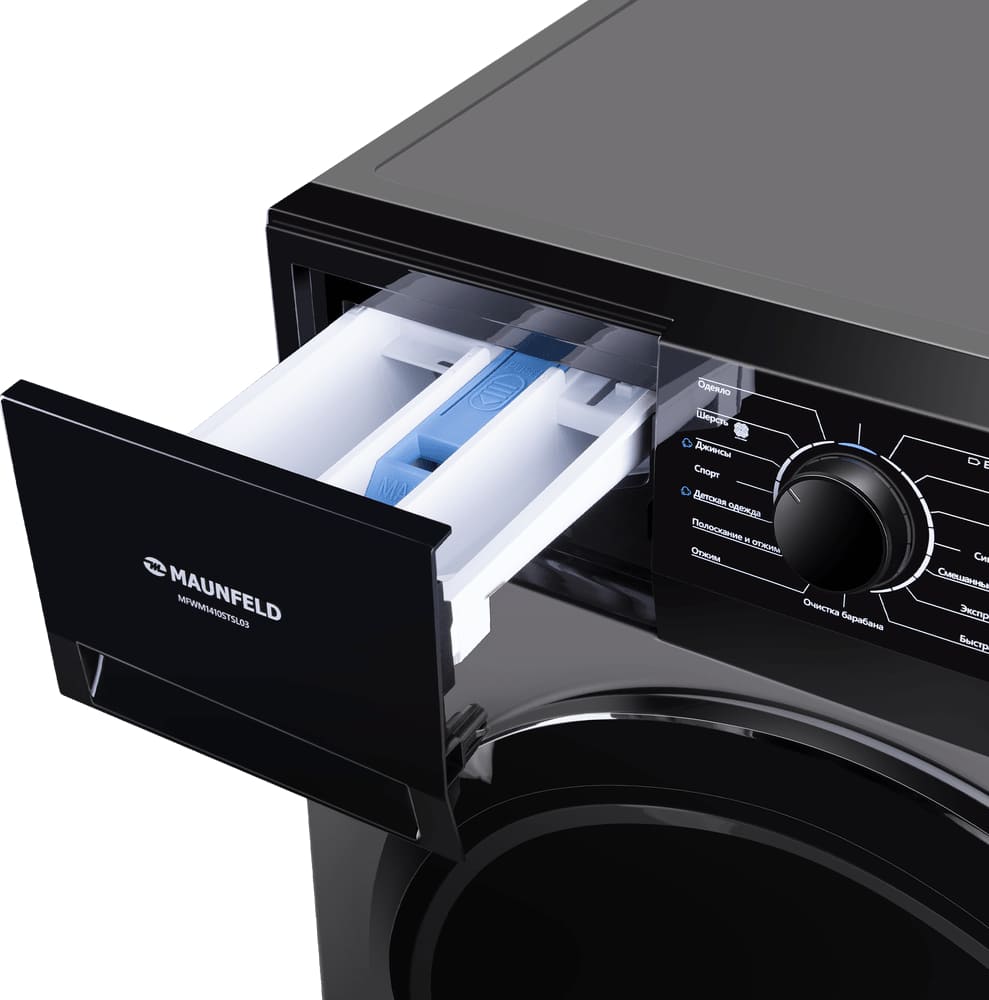 Стиральная машина Маунфилд MFWM1410STSL03 выпущена в стандартной конфигурации — устанавливается отдельно, поэтому рекомендуем заранее выделить для нее место в квартире. Благодаря классической фронтальной загрузке она привычна и удобна даже для тех, кто не очень разбирается в технике. В барабан помещается большое количество белья, что подойдет большим семьям или тем, кто часто стирает объемные вещи — постельное белье, верхнюю одежду. Максимальная загрузка: 10 кг.