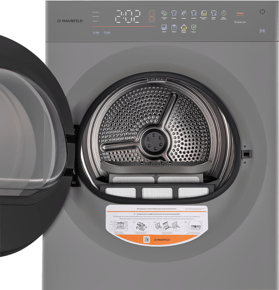 Сушка по времени в сушильных и стирально-сушильных машинах является наиболее простым способом задания параметров работы. В этом режиме выставляется только длительность сушки и ее тип — например, теплый или холодный обдув. Загрузка при этом может быть любой: от минимальной при сушке одной вещи до максимальной.