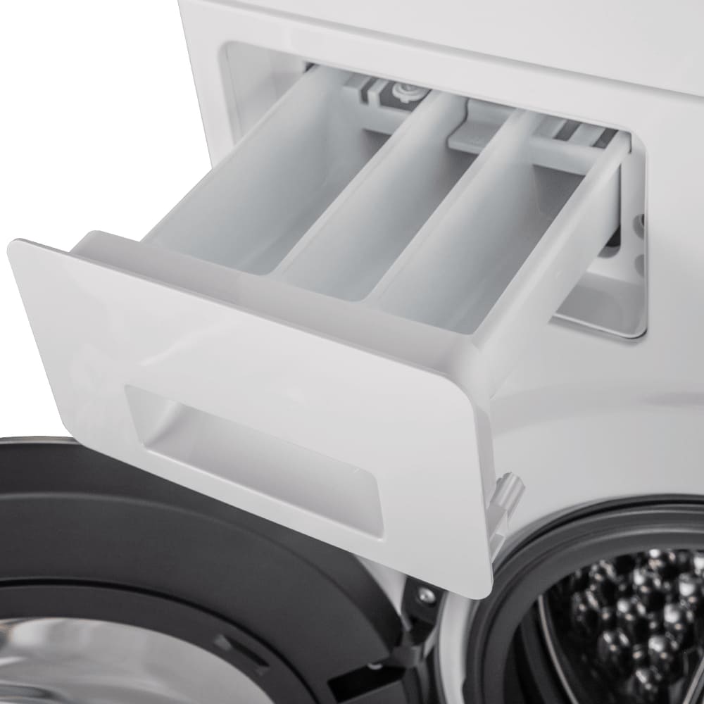 Цвет этой стиральной машинки — белый. Ее можно установить в колонну с сушильной машиной, чтобы оптимизировать рабочее пространство и сделать удобный «прачечный» уголок. Обычно для этого необходимы специальные соединительные элементы — ищите их в разделе «Аксессуары». Мотор: Инверторный. Благодаря ему машина работает тише, потребляет меньше электроэнергии, сохраняя при этом необходимую мощность.