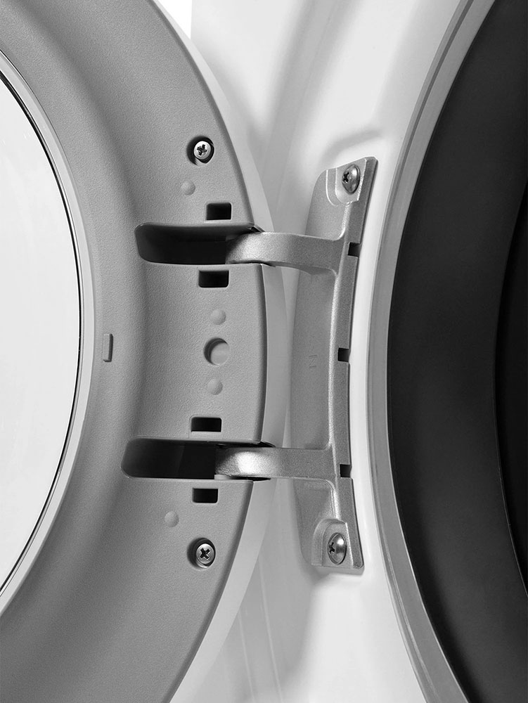 Еще одно преимущество фронтальных машин — прозрачное стекло в дверце, позволяющее визуально контролировать процесс стирки. Безопасность использования гарантирует блокировка дверцы после запуска программы стирки.