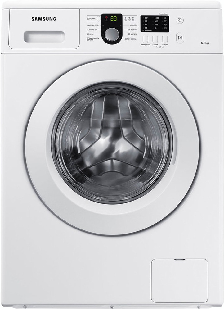 Цвет этой стиральной машинки — белый. В данной модели Samsung используется барабан Diamond.