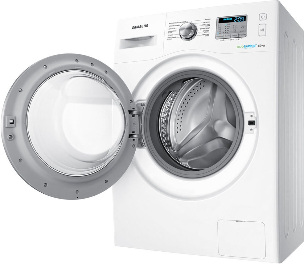 Цвет этой стиральной машинки — белый. В данной модели Samsung используется барабан Diamond.