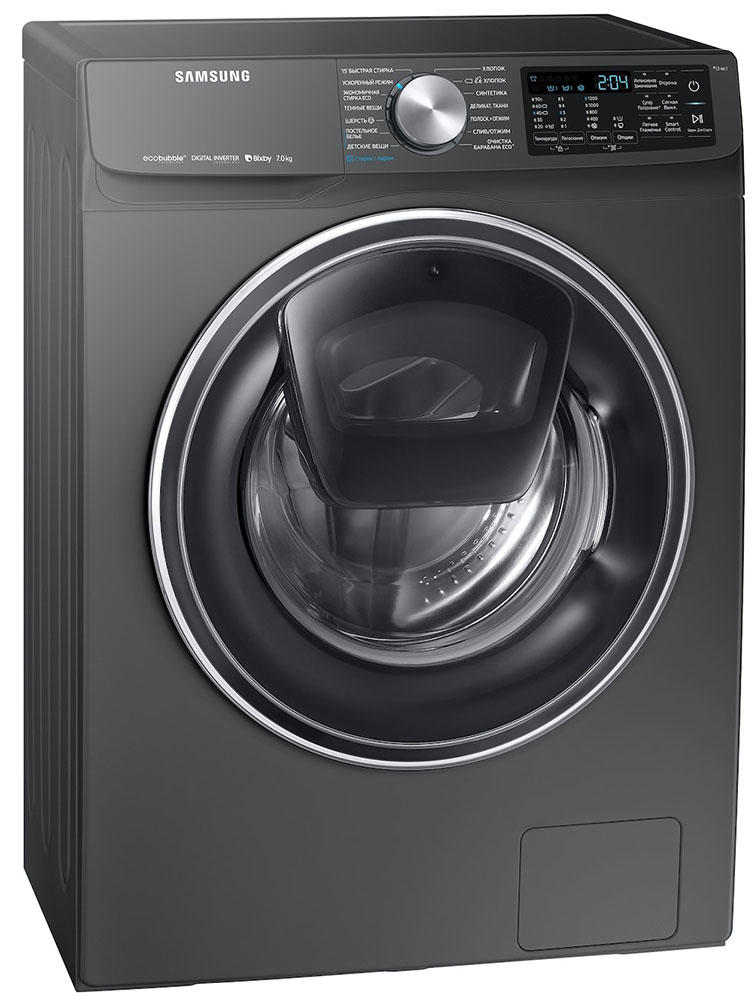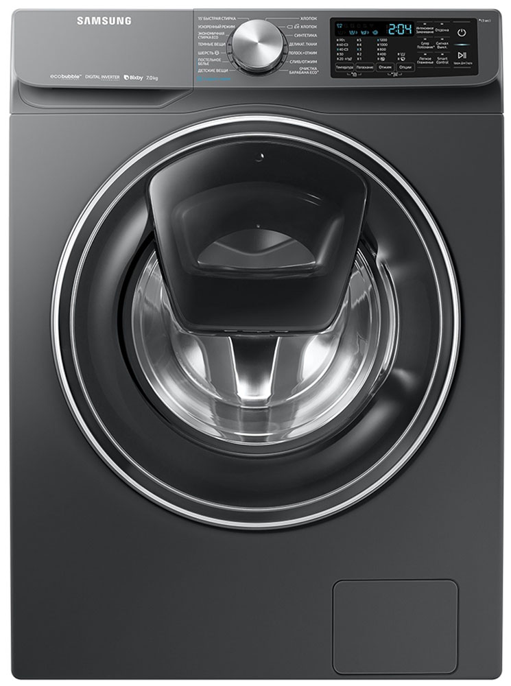 Цвет этой стиральной машинки — серый. В данной модели Samsung используется барабан Swirl. Мотор: Инверторный. Благодаря ему машина работает тише, потребляет меньше электроэнергии, сохраняя при этом необходимую мощность.