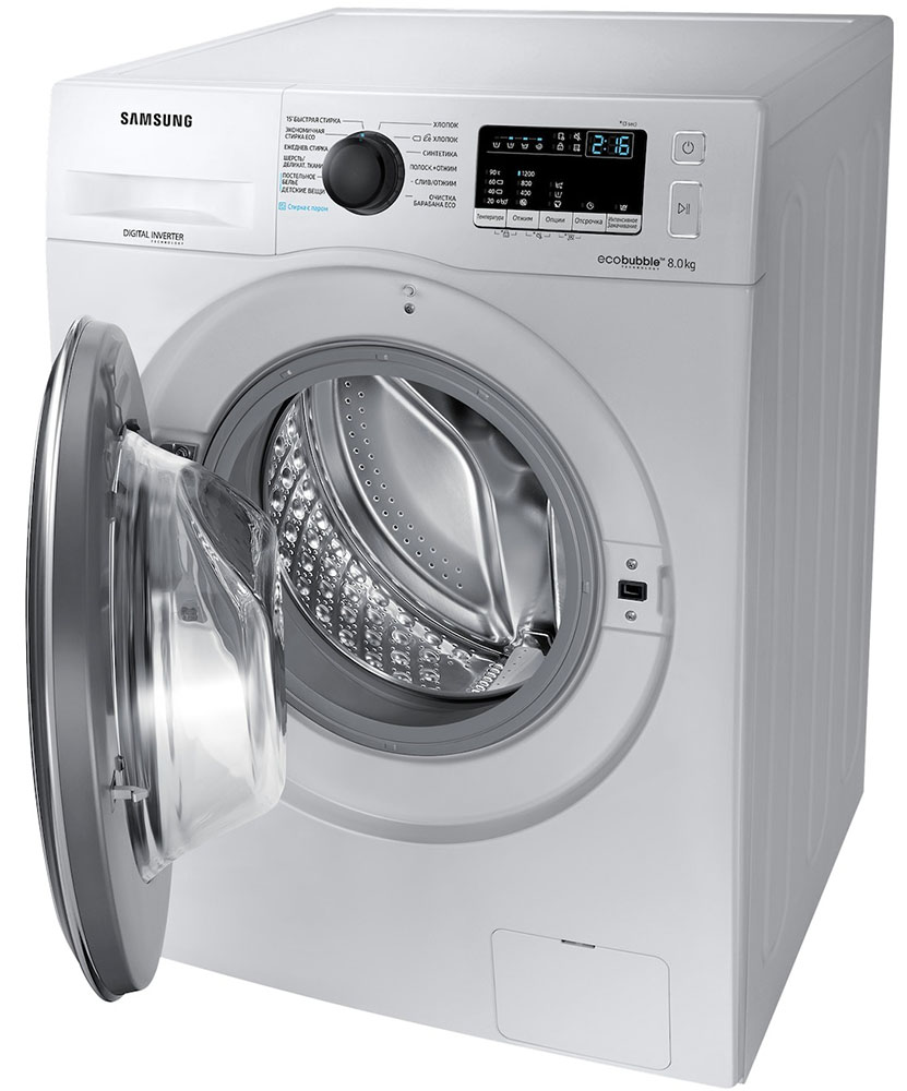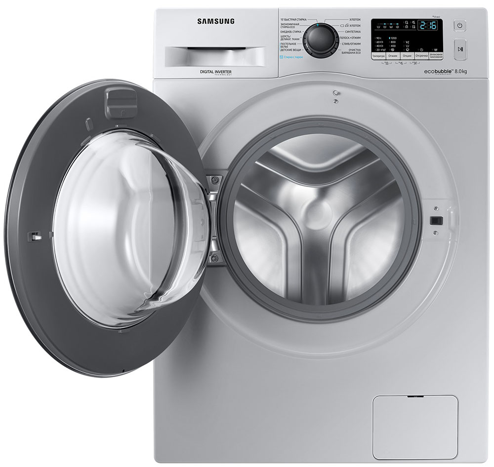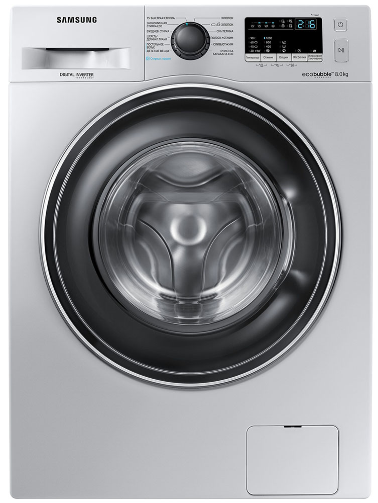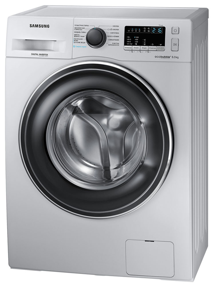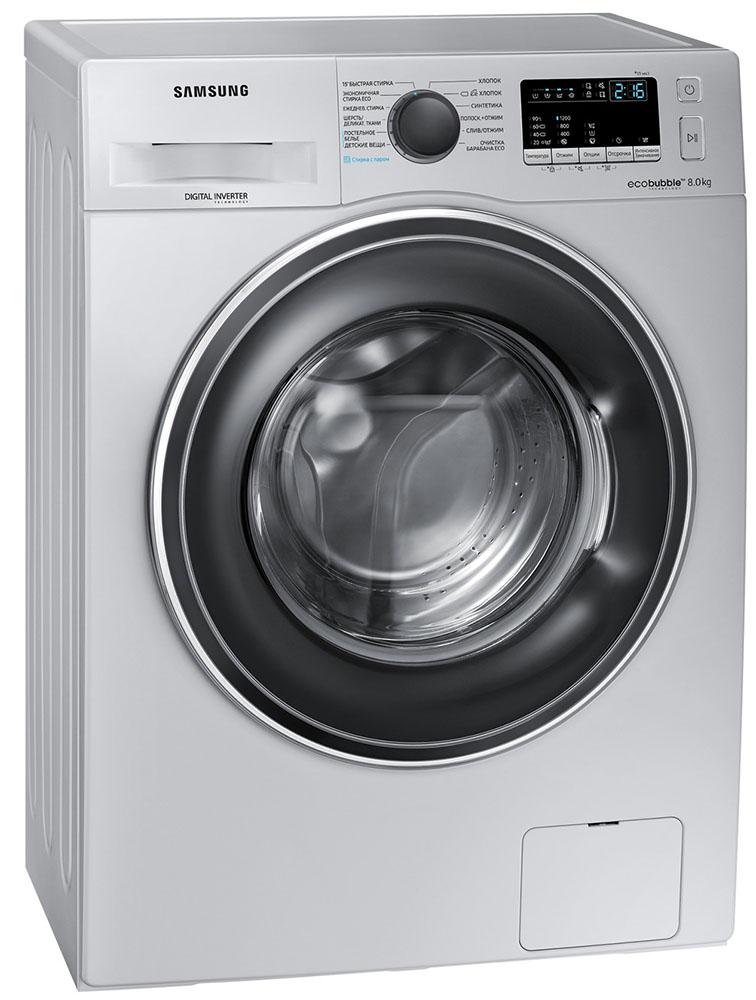 Цвет этой стиральной машинки — серебристый. В данной модели Samsung используется барабан Swirl. Мотор: Инверторный. Благодаря ему машина работает тише, потребляет меньше электроэнергии, сохраняя при этом необходимую мощность.