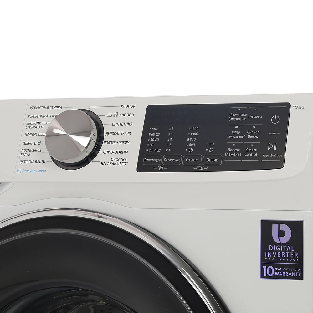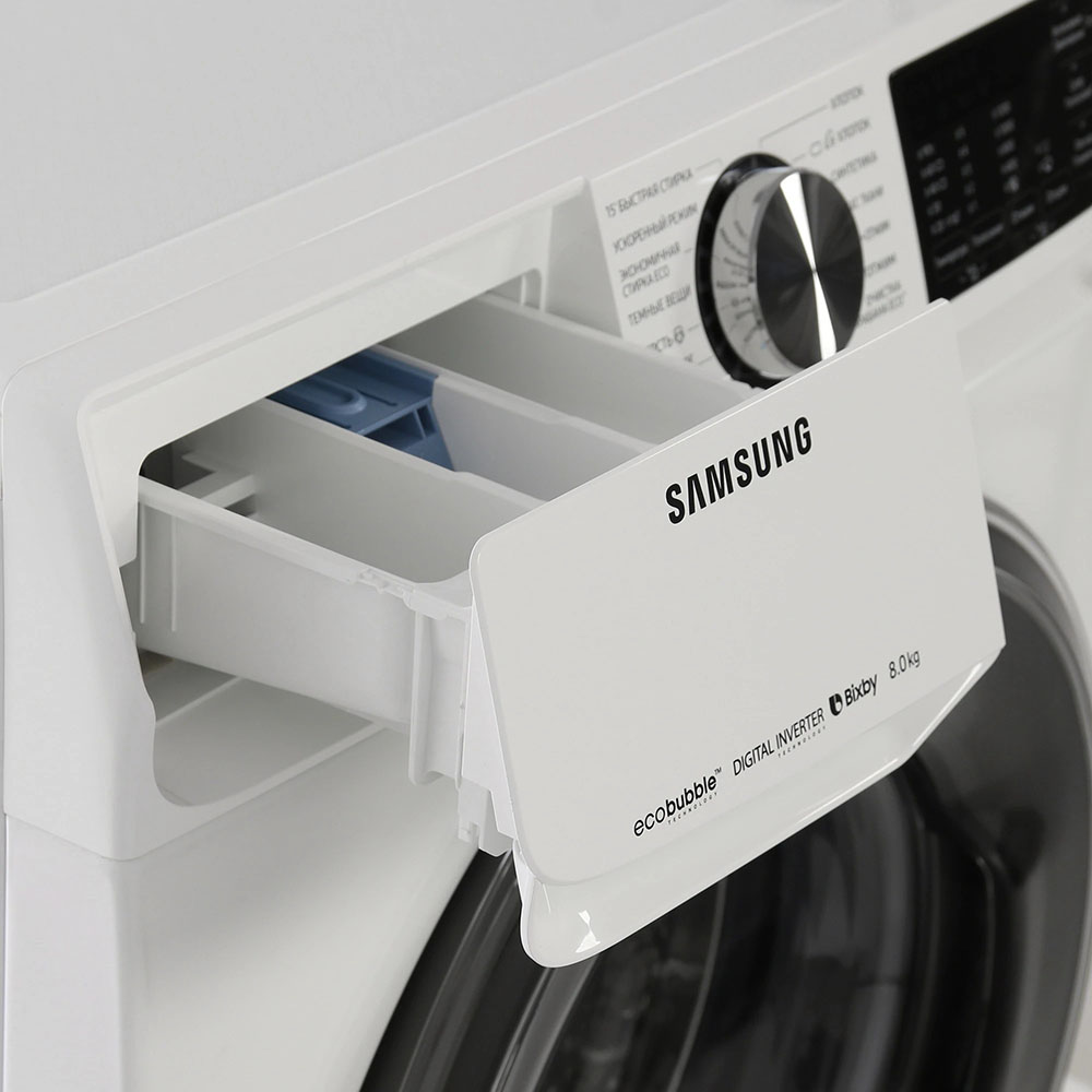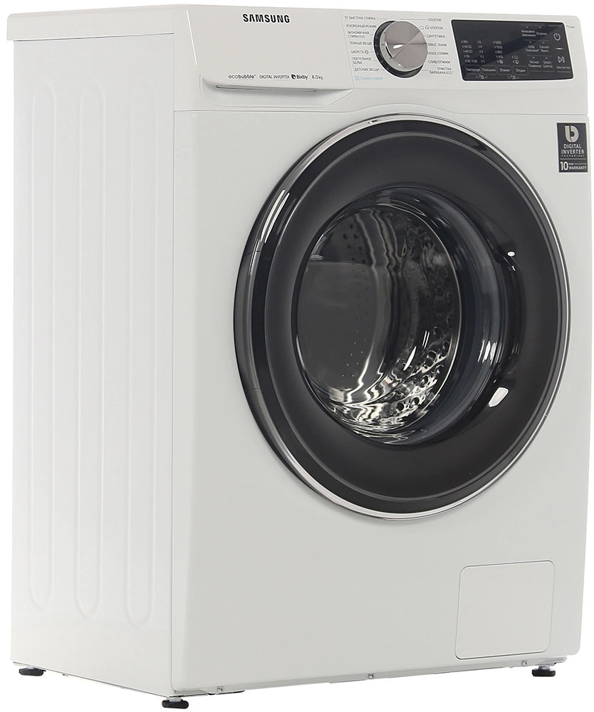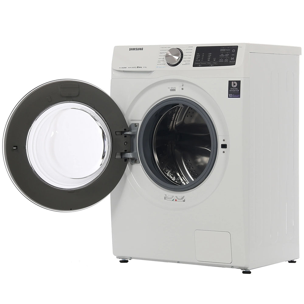 Цвет этой стиральной машинки — белый. В данной модели Samsung используется барабан Swirl. Мотор: Инверторный. Благодаря ему машина работает тише, потребляет меньше электроэнергии, сохраняя при этом необходимую мощность.