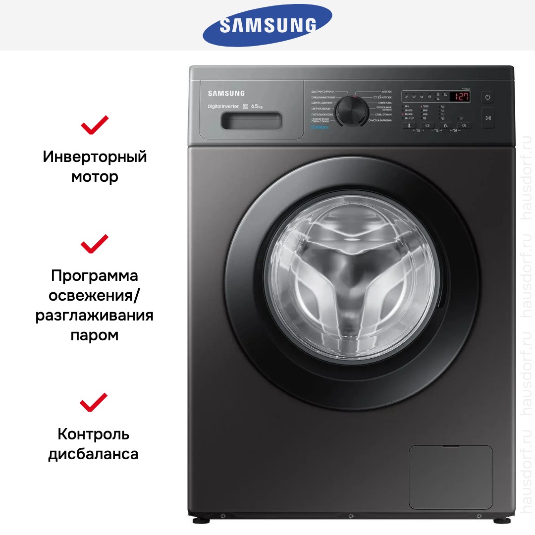 Стиральная машина Samsung WW65AG4S20CXLP сочетает компактный формат и продуманный дизайн для домашнего использования.