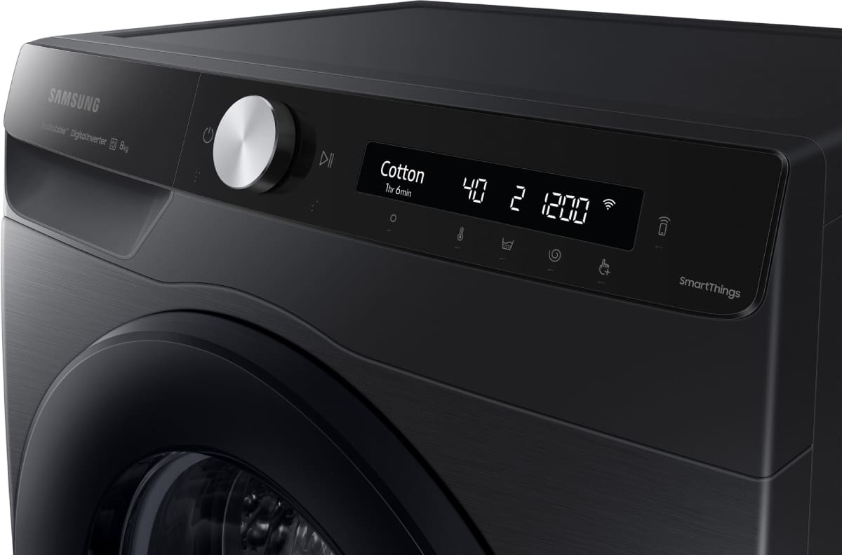 Цвет этой стиральной машинки — черный. В данной модели Samsung используется барабан Swirl. Мотор: Инверторный. Благодаря ему машина работает тише, потребляет меньше электроэнергии, сохраняя при этом необходимую мощность.