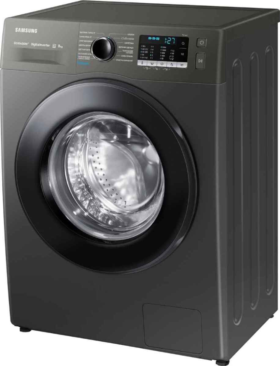Цвет этой стиральной машинки — серый. В данной модели Samsung используется барабан Swirl. Мотор: Инверторный. Благодаря ему машина работает тише, потребляет меньше электроэнергии, сохраняя при этом необходимую мощность.