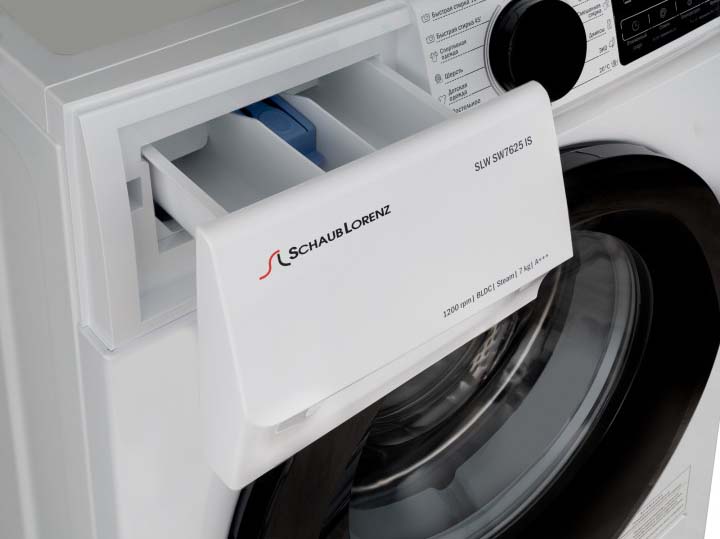 Стиральная машина Шауб Лоренц SLW SW7625 IS выпущена в стандартной конфигурации — устанавливается отдельно, поэтому рекомендуем заранее выделить для нее место в квартире. Благодаря классической фронтальной загрузке она привычна и удобна даже для тех, кто не очень разбирается в технике. За счет небольшой глубины данную модель предпочитают владельцы небольших квартир, студий. Вместительность барабана средняя, поэтому ее хватит и для одиночек, и для семей с детьми. Максимальная загрузка: 7 кг.