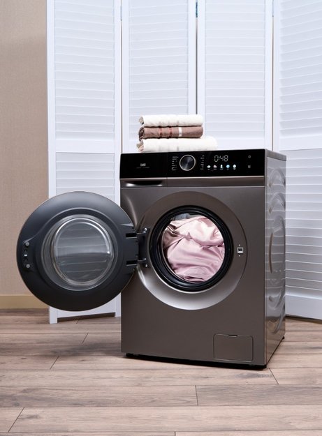 Цвет этой стиральной машинки — серый. Мотор: Инверторный. Благодаря ему машина работает тише, потребляет меньше электроэнергии, сохраняя при этом необходимую мощность.