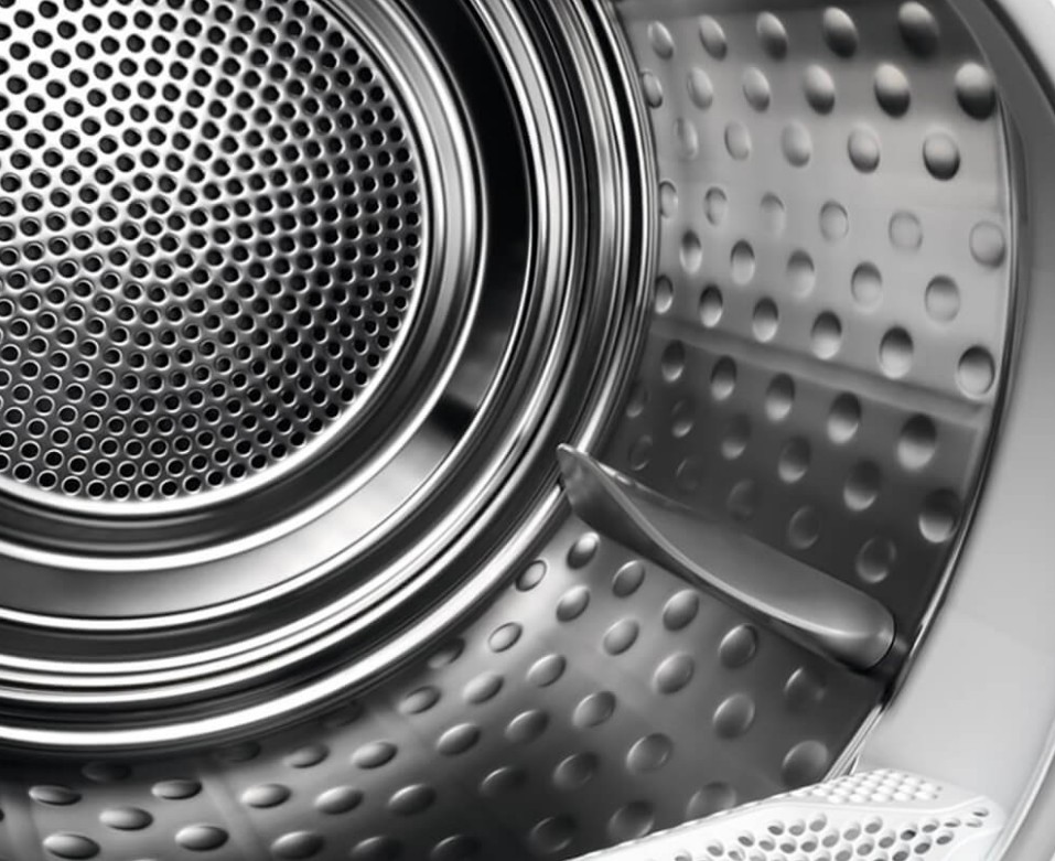 Барабан вращается попеременно в разные стороны, чтобы белье не сбивалось в ком и эффективно просушивалось со всех стороны.