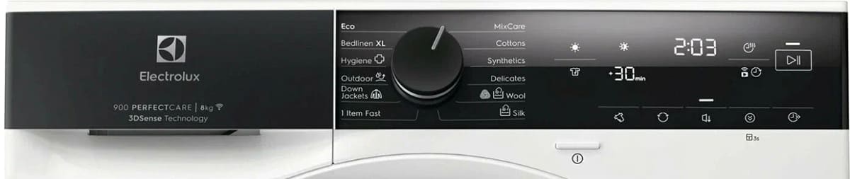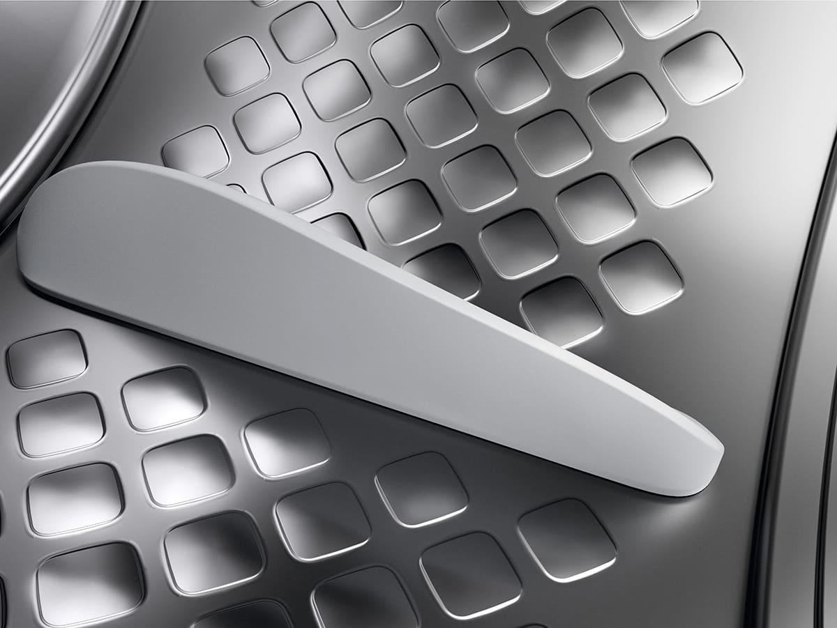 Электронное управление удобно и понятно для людей разного поколения. Контролировать процесс можно с помощью дисплея, на который выводится основная информация. В вашем распоряжении индикаторы: времени до окончания программы, заполнения емкости для конденсата/необходимости опорожнения резервуара, продолжительности фазы «антисминание». Вы можете использовать таймер, чтобы отложить запуск на подходящее время. Когда машинка прекратит работу, вы услышите специальный сигнал.