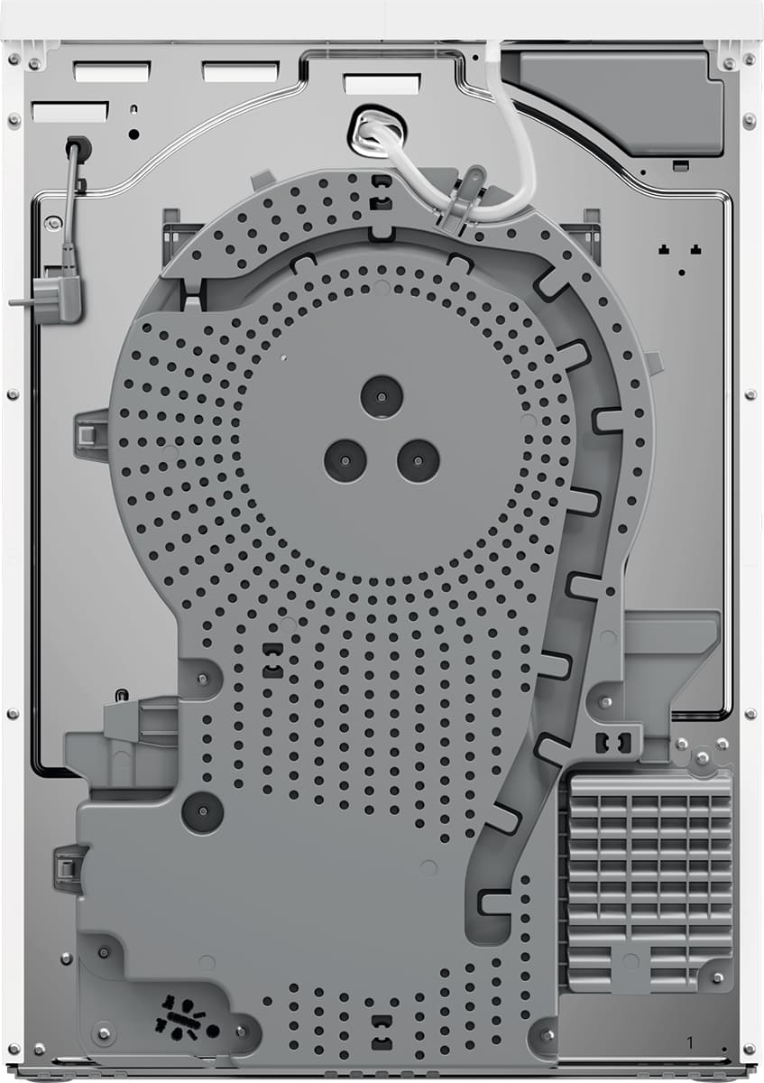 Тип сушки белья в данной модели — с тепловым насосом. Благодаря этому воздух поступает в барабан уже теплым, что ускоряет работу.