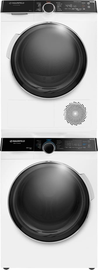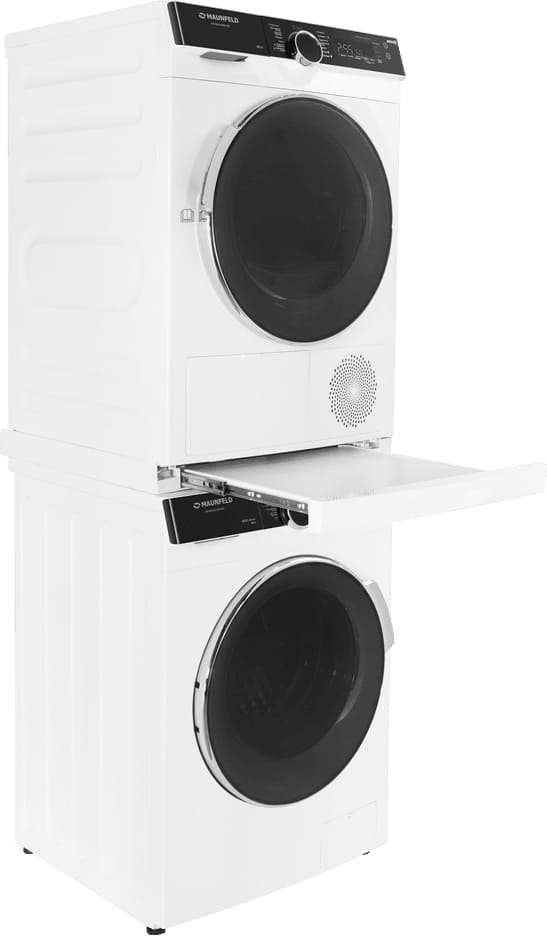 Сушильная машина Maunfeld предназначена для домашнего использования, поэтому имеет стандартные габариты и большое разнообразие программ. Так как она устанавливается отдельно, нужно заранее найти достаточно места в помещении. Особенности, на которые нужно обратить внимание при размещении: возможность установки в колонну. Колонна — это название для совместной установки со стиральной машиной друг на друга, обычно для этого нужен специальный крепежный элемент.
