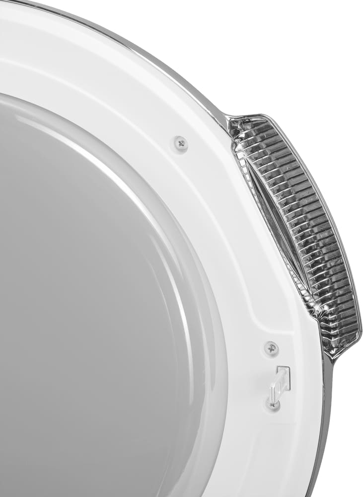 В барабан единовременно можно загрузить 10 кг. Подсветка — не только красивая, но и функциональная деталь, так как дает хороший обзор, как проходит сушка. Цвет корпуса — белый. Конструктивные решения, которые выделяют эту модель: регулируемые ножки.