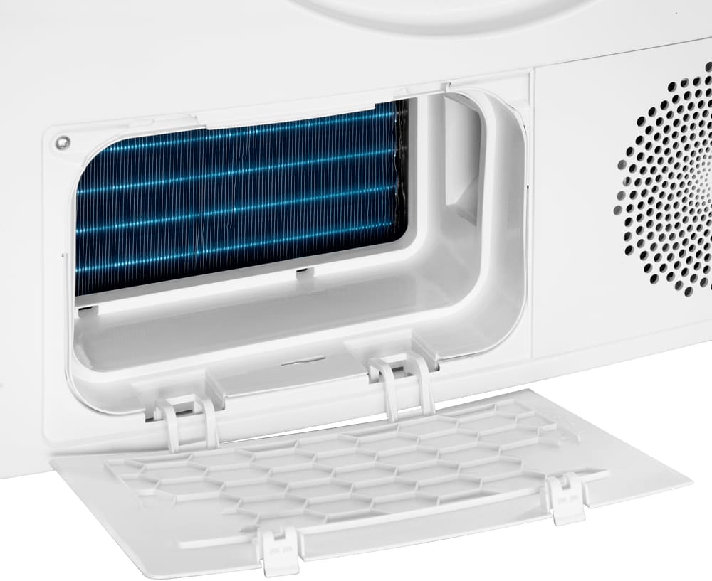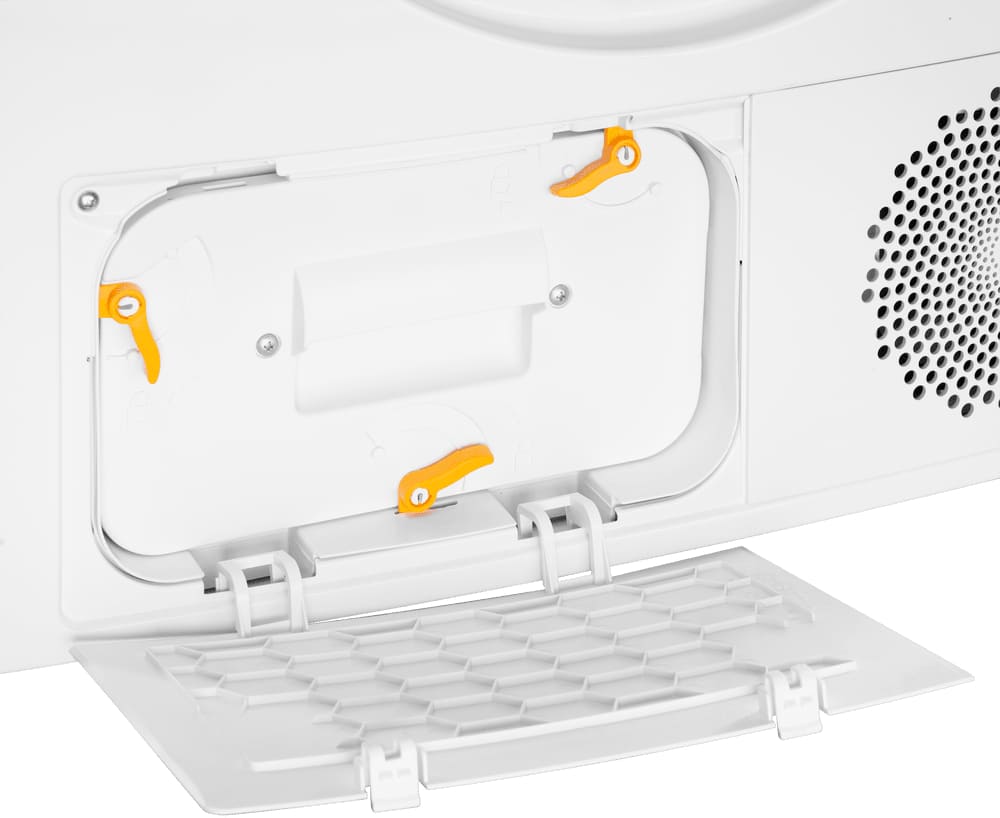 Сушильные машины конденсационного типа, как и устройства с тепловым насосом, не требуют присоединения к системе вентиляции и подключаются только к электросети. Конденсат, который удаляется из загруженного белья, стекает в специальный контейнер. Он расположен так, чтобы его извлечение было максимально удобным — например, в верхней части корпуса, там, где у стиральных машин находится лоток для порошка. Опустошать этот контейнер необходимо вручную — как правило, после завершения каждого цикла работы. О необходимости слива конденсата предупреждает специальный индикатор на панели управления.