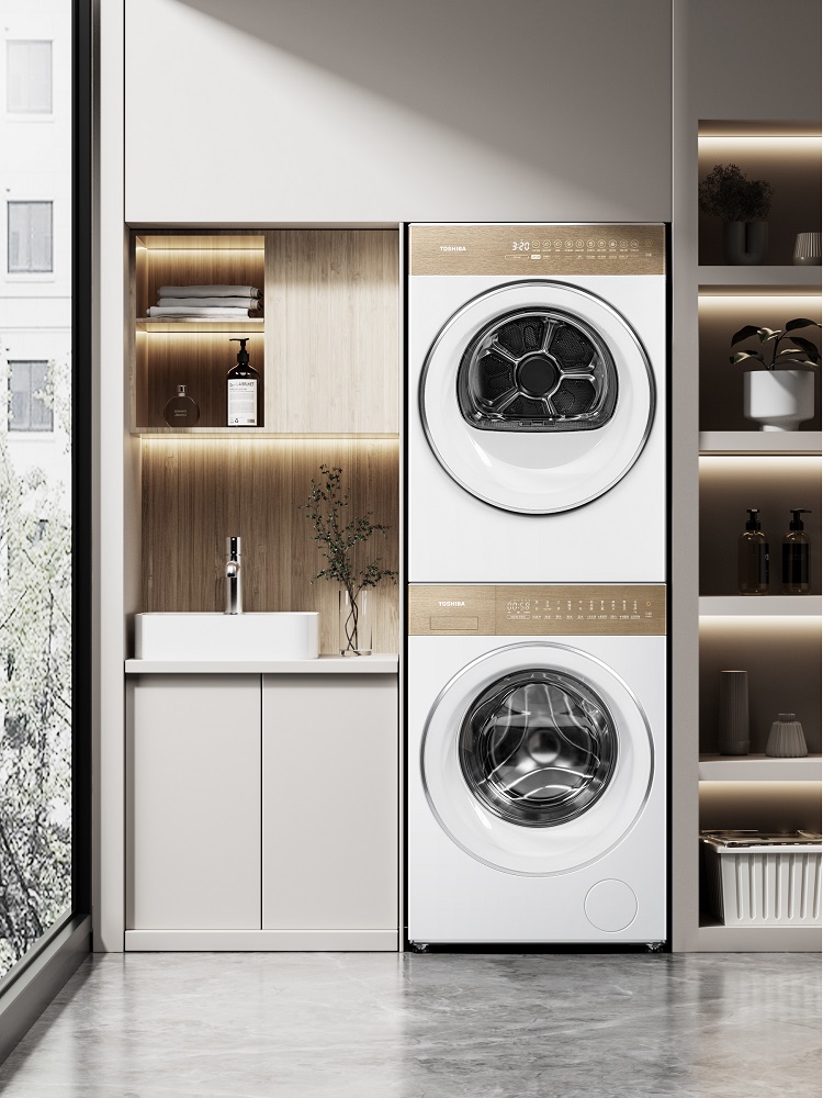 Сушильная машина Toshiba предназначена для домашнего использования, поэтому имеет стандартные габариты и большое разнообразие программ. Так как она устанавливается отдельно, нужно заранее найти достаточно места в помещении. Особенности, на которые нужно обратить внимание при размещении: возможность установки в колонну. Колонна — это название для совместной установки со стиральной машиной друг на друга, обычно для этого нужен специальный крепежный элемент.