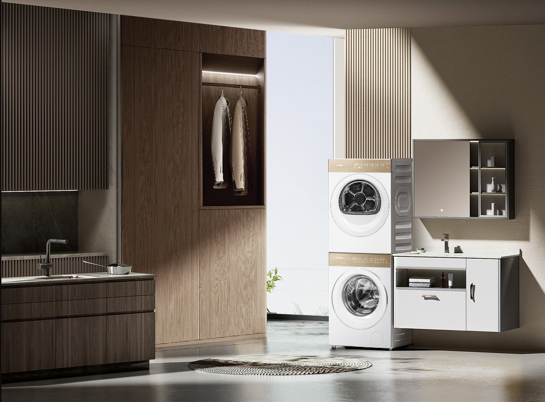 Высота сушильной машины составляет 82-85 см, благодаря чему ее можно разместить под столешницей — например, в ванной рядом с раковиной. У некоторых моделей высоту прибора можно уменьшить, сняв верхнюю крышку и заменив специальной технологической крышкой для встраивания или металлической плитой.